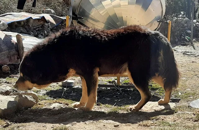 Along with the animals, herders bring massive dogs to look after their livestock. Thick furs, huge body structures , and long dropping ears are the specialities of these dogs. Their roaring like barking is even more special. These dogs aren’t ordinary like others. These are Nepali 'Bhote Kukur' , popularly known as 'Tibetan Mastiff' responsible for herding after the sheep, goats, and cattle in the solitude shed.